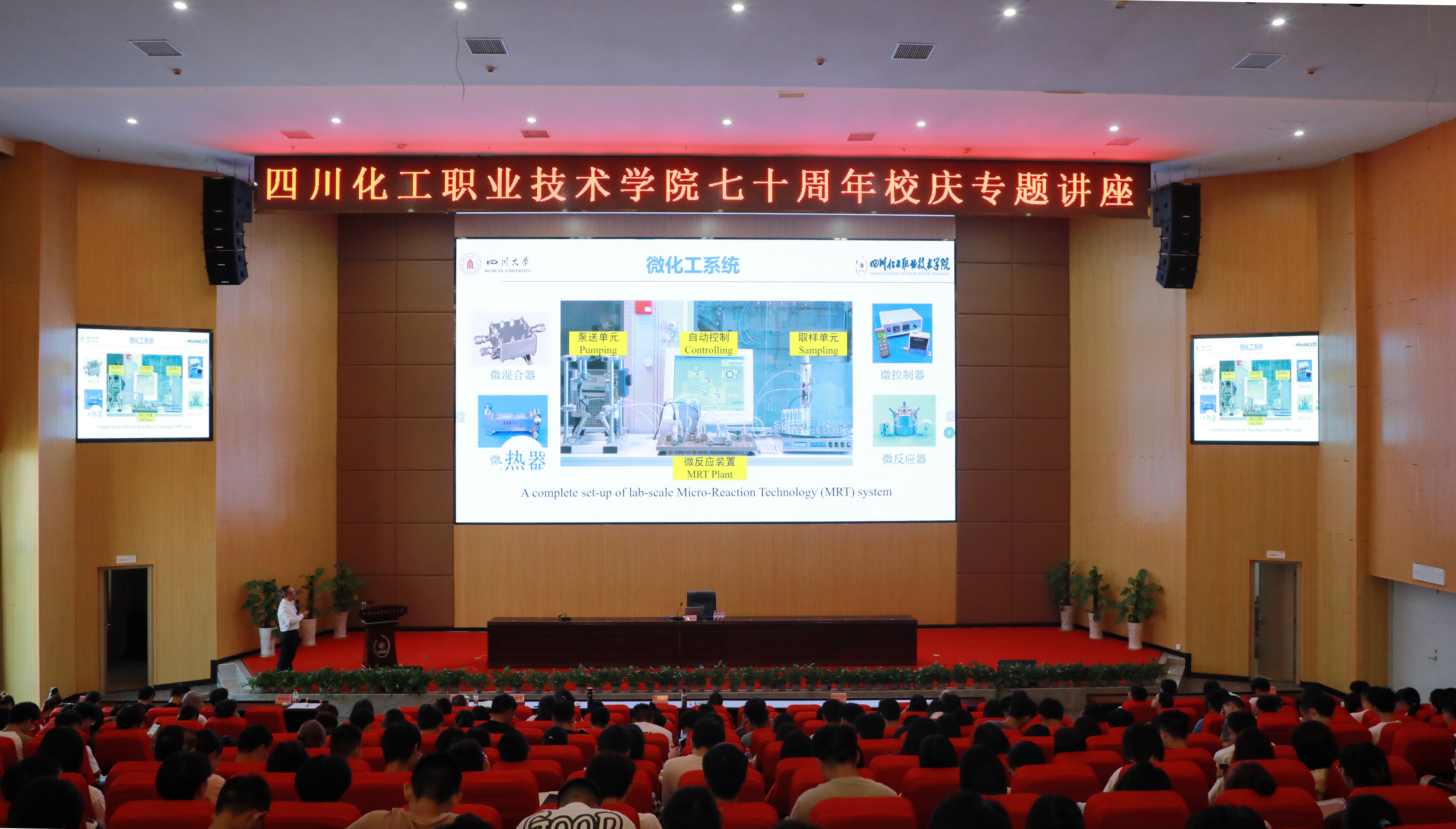 七秩芳华正青春,匠心臻筑新时代。2023年9月15日上午,在学校迎来70周年校庆之际,学校优秀校友、四川大学化学工程学院副院长唐盛伟教授为大家开展一场“微化工技术与传质强化”学术讲座。全校400多名师生、校友参加了讲座,学校党委委员、副院长邓启华主持。