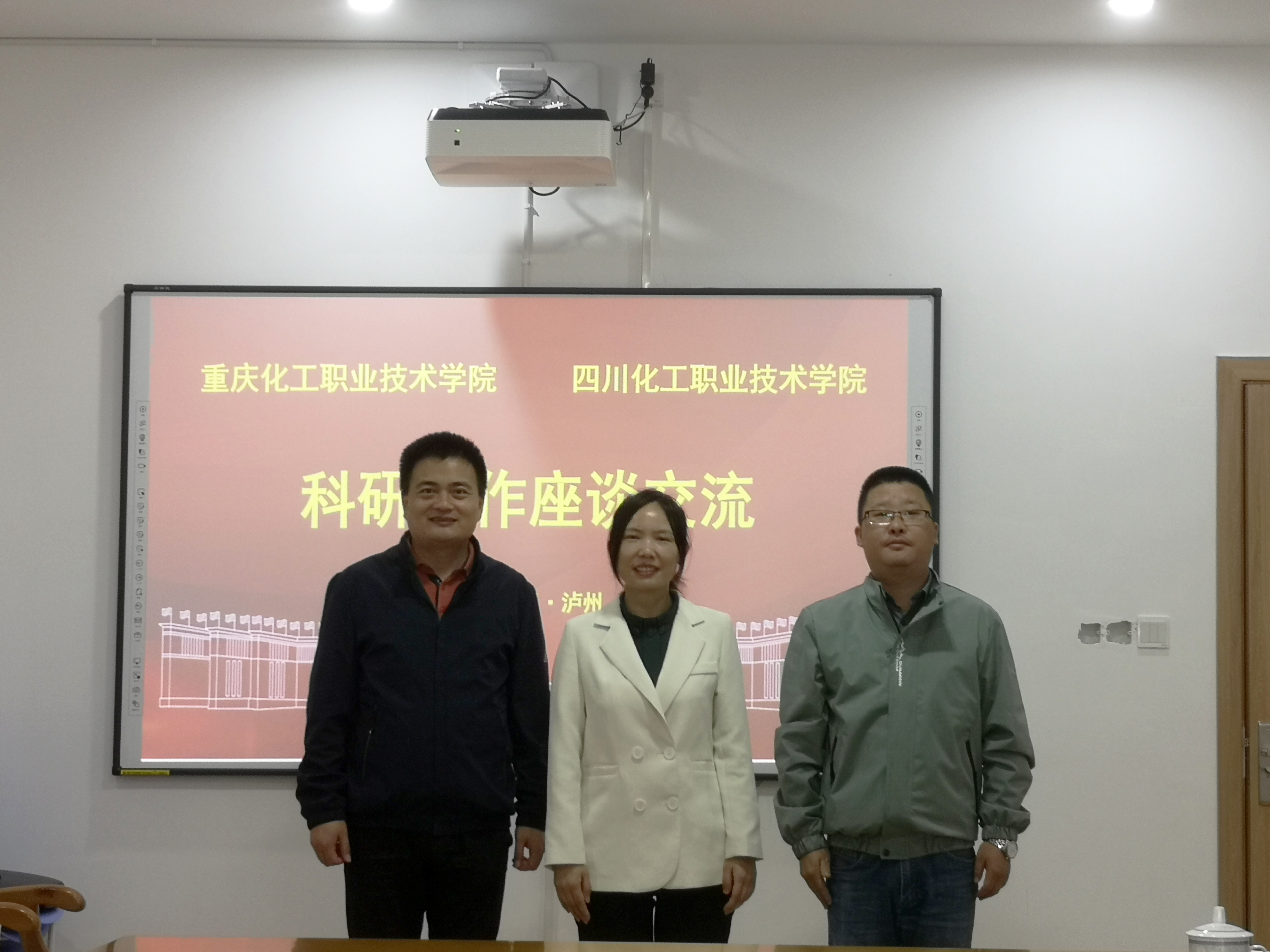 为贯彻落实成渝地区双城经济圈战略,进一步加强高校间的合作交流,2022年11月4日上午,重庆化工职业技术学院刘碧林老师来我校进行科研工作经验交流。学校人事处处长窦宇、科技处副处长文仁兴参加座谈交流。